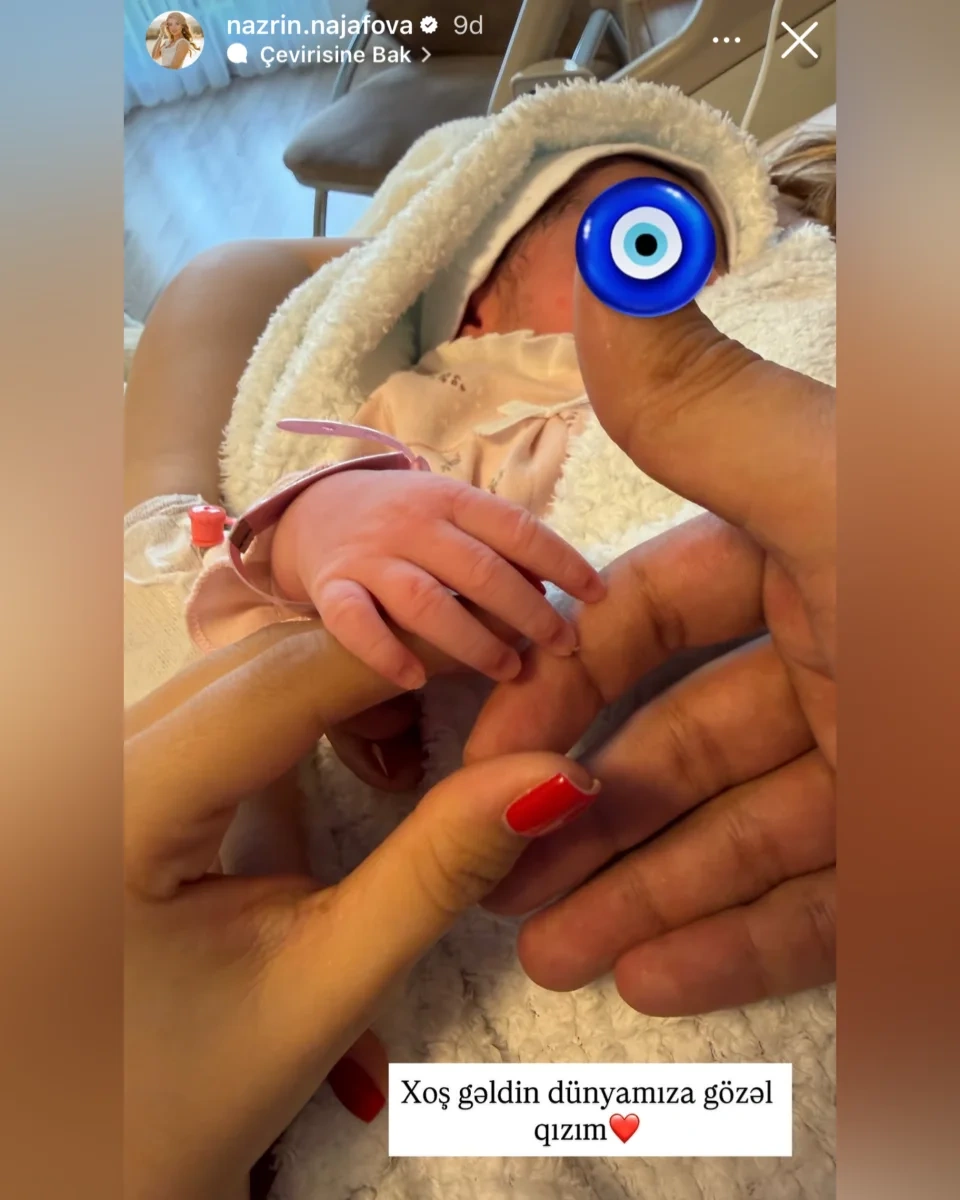 Əsas Şou biznes Nəzrinlə Mərdanın qızı dünyaya gəldi Nəzrinlə Mərdanın qızı dünyaya gəldi Gülay — 26 Mar 2026 16:36 Nəzrinlə Mərdanın qızı dünyaya gəldi İnfluenser Nəzrin Nəcəfova ilə müğənni Mərdan Kazımovun qızı dünyaya gəlib.OLAY yazır ki, bu barədə Nəzrin məlumat yayıb. O, yeni doğulan övladının fotosunu paylaşaraq “Xoş gəldin dünyamıza, gözəl qızım” şərhini yazıb.