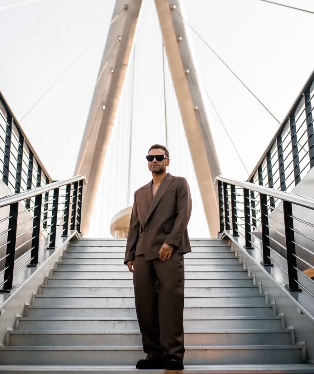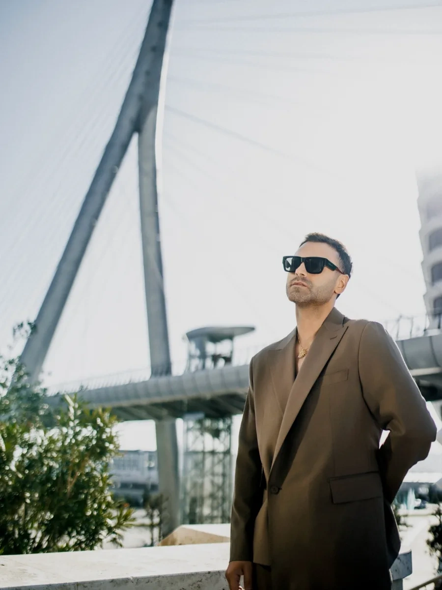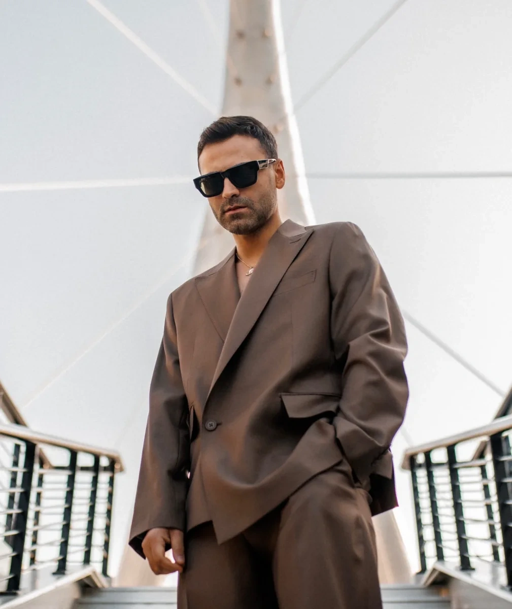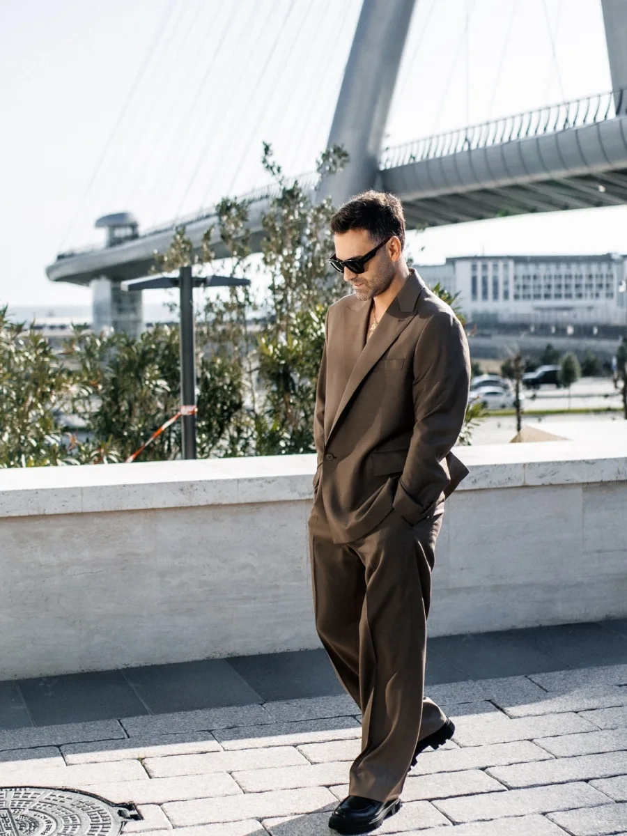 OLAY yazır ki, o, Ağ şəhərdəki yeni körpü qarşısında pozalar verib. İsmayılın şabalıdı kostyumunu qara eynək və qızılı aksessuarla tamamlayıb.