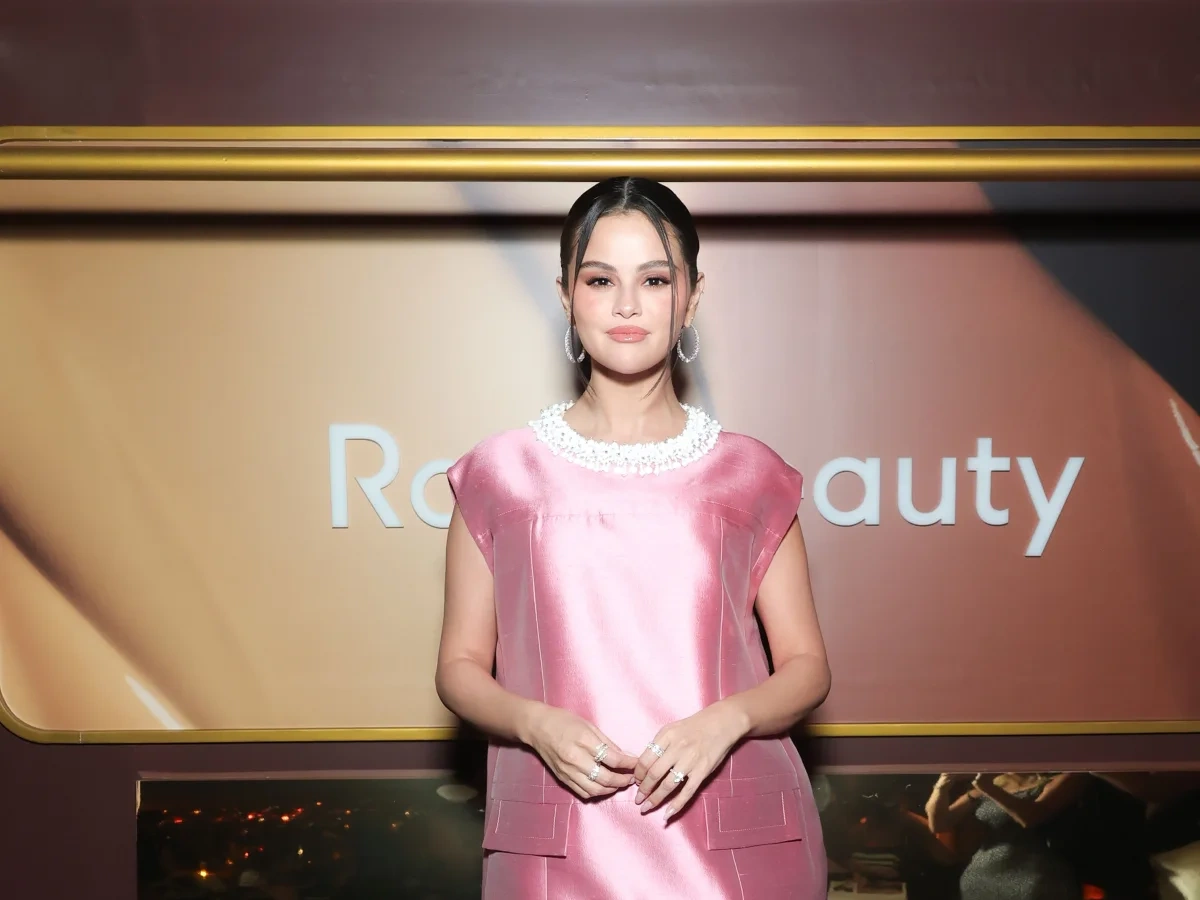 Selena Qomez çəhrayı mini paltarda öz kosmetik brendinin tədbirinə qatılıb.