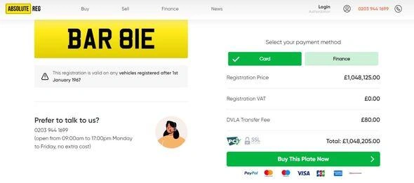 Milli.Az oxu.az-a istinadən bildirir ki, qeydiyyat nişanı 1,05 milyon funt sterlinq (təxminən 1,33 milyon dollar) dəyərində qiymətləndirilib.