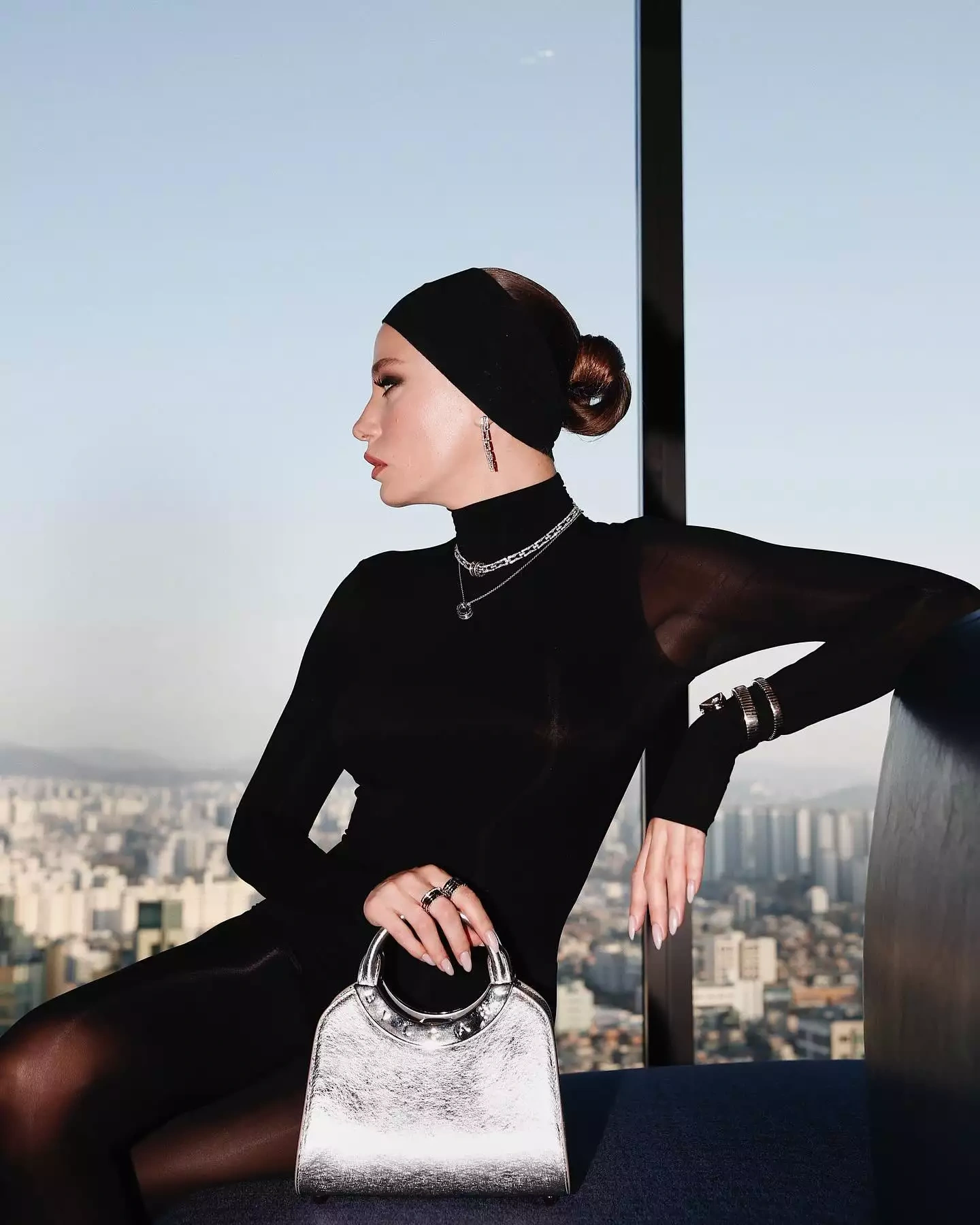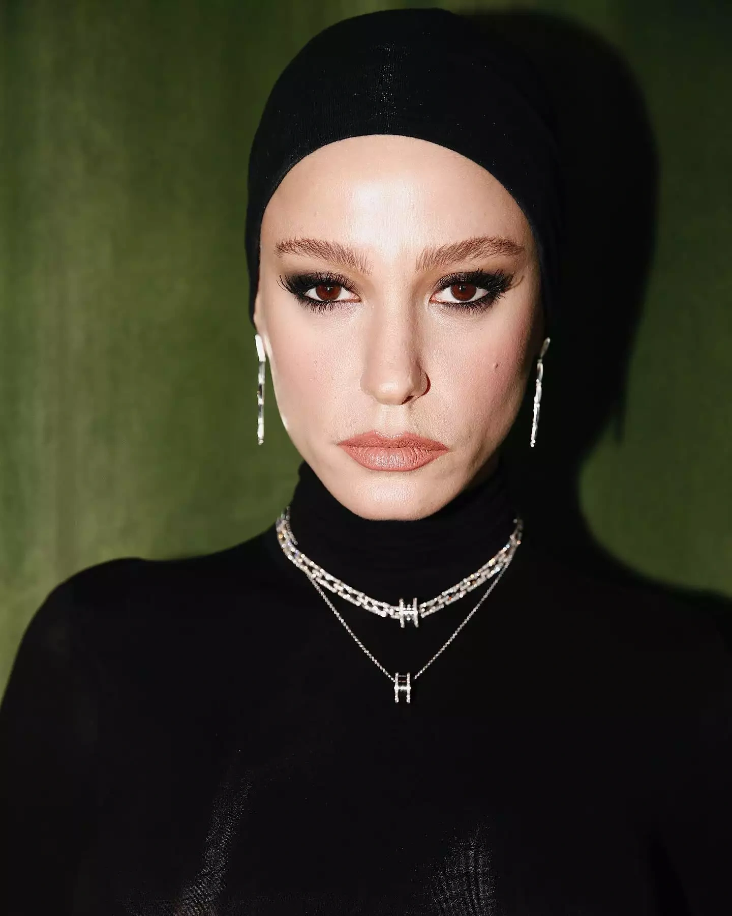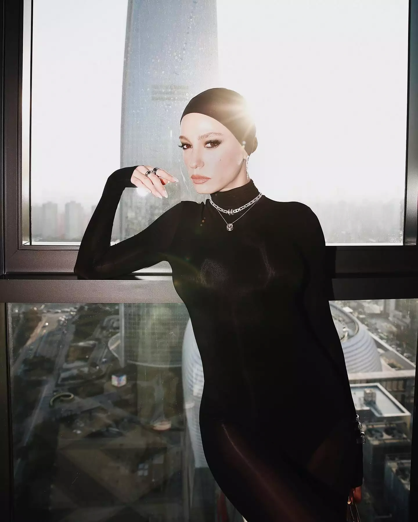 O, başdan sona qara geyindiyi “look”unu həmin brendin zinət əşyaları ilə tamamlayıb.