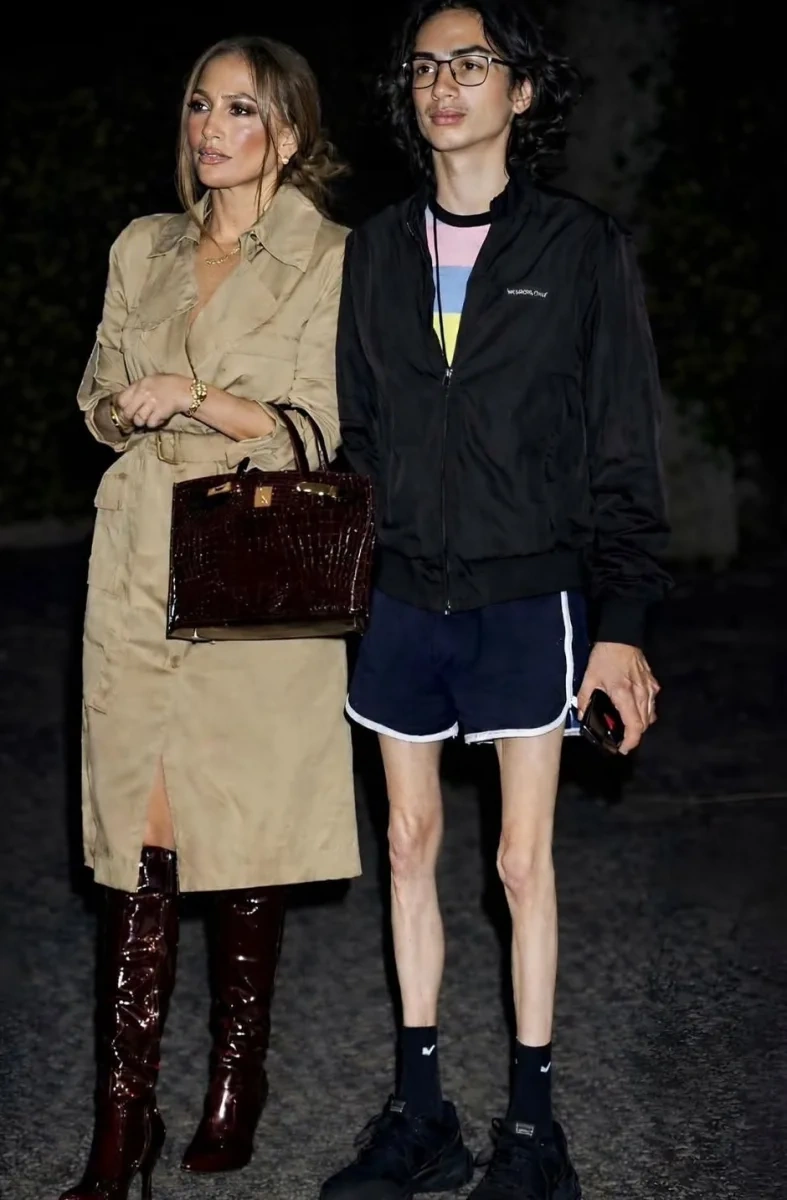 56 yaşlı Cennifer Lopez və onun 18 yaşlı oğlu Maks Muniz Beverly Hillsdə avtomobil gözləyərkən görüntüləniblər.
