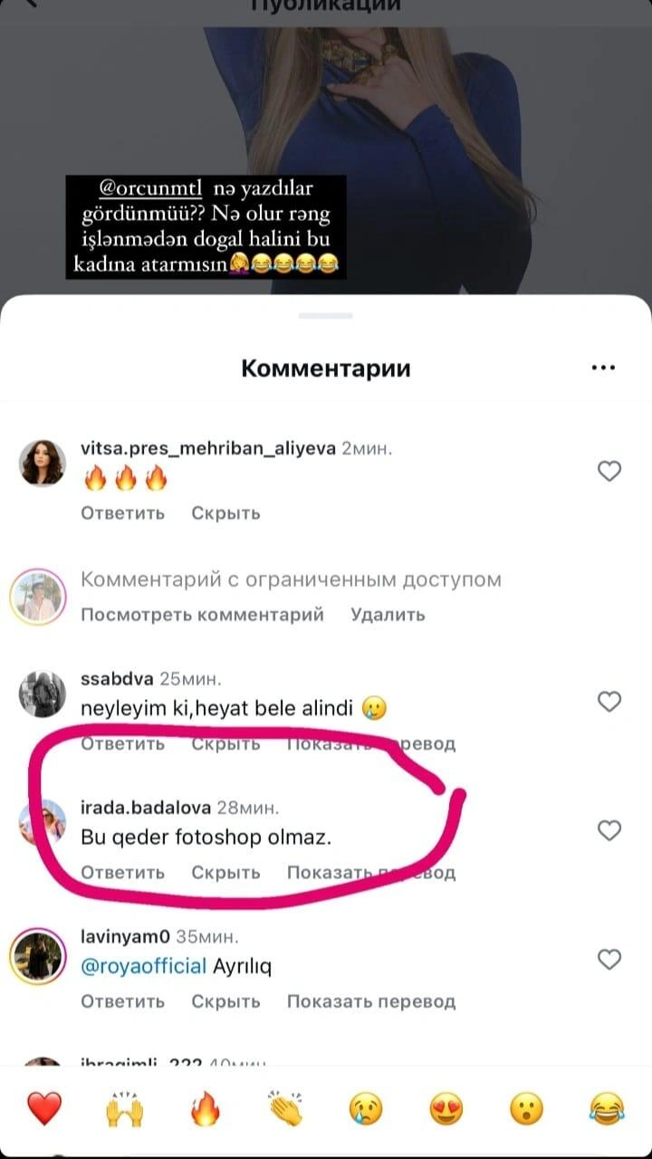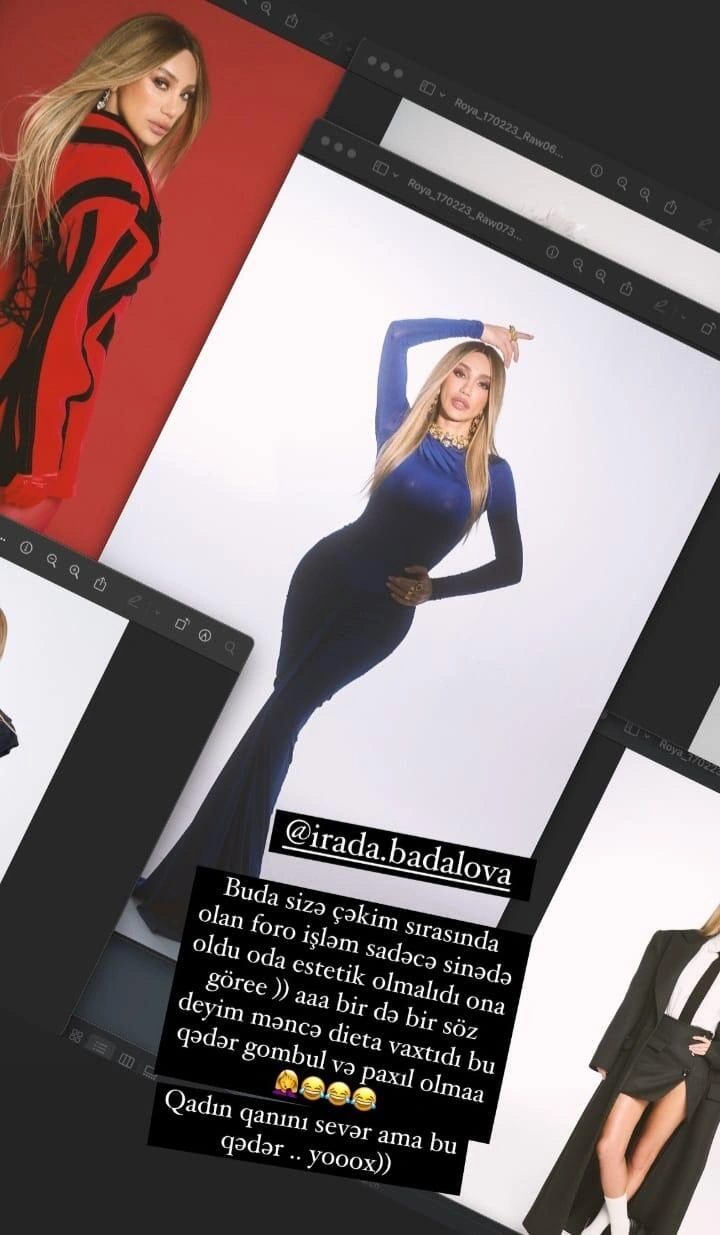 Sosial media hesabında fotolarını yayımlayan Xalq artistinin səbr kasasını dolduranlardan biri də onun fotoları çox fotoşop etməsi ilə bağlı yazılan şərh olub. Röya həmin şərhi "hekayələr" bölümündə paylaşaraq bu sözləri yazıb: