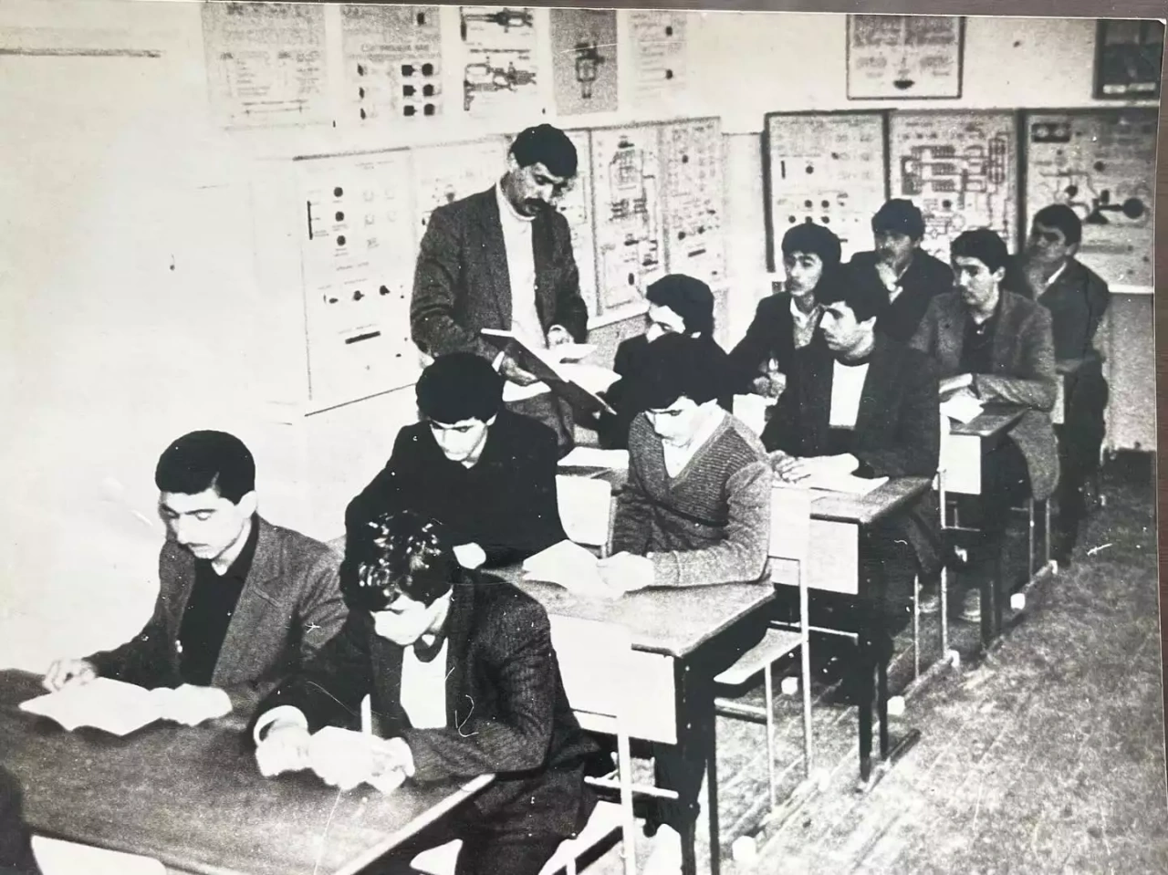 "1987 ci il. 22 nömrəli texniki peşə məktəbi. Şəkilə baxıb özünü tanıyan varsa, yazsın"