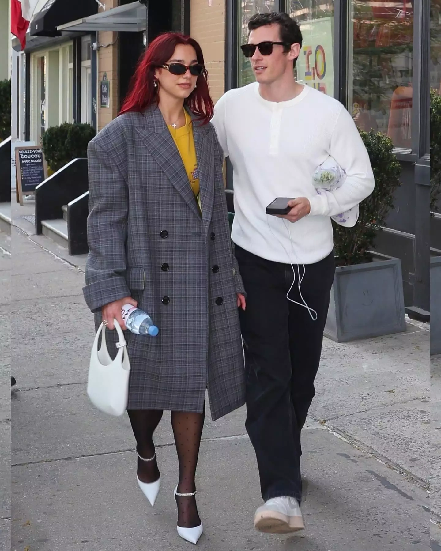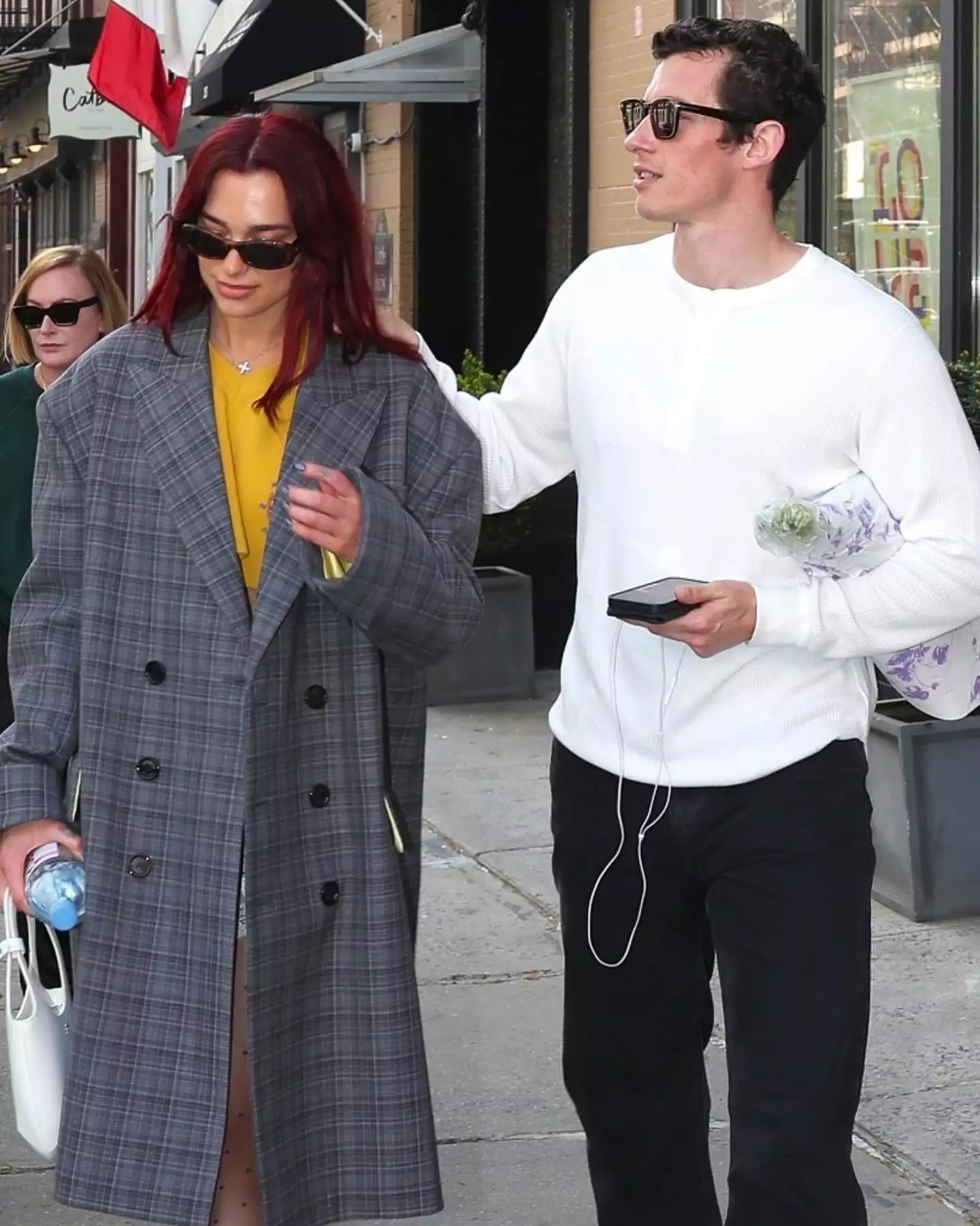 Dua Nyu-York küçələri üçün boz, uzun palto və ağ rəngli ayaqqabı seçib. O, paltonun altından gözə çarpan sarı köynək və qara corablarla “look”unu tamamlayıb.