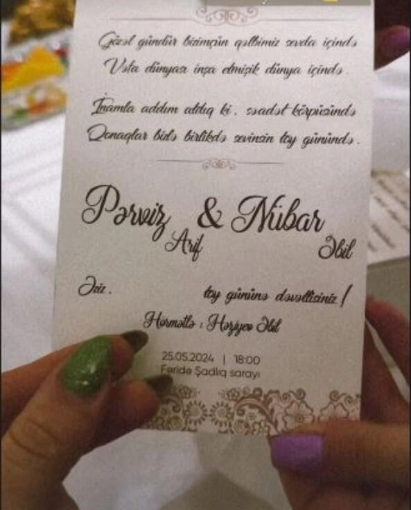 Milli.Az axşam.az-a istinadən xəbər verir ki, o, bu haqda özü məlumat yayıb. Aparıcı toy dəvətnaməsini paylaşaraq mayın 25-də ailə qurcağını bildirib.