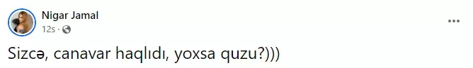 O, izləyicilərinə "Sizcə, canavar haqlıdır (Dilarənin "Maska"dakı obrazı - red.), yoxsa quzu (Samirəni nəzərdə tutur - red.)" sualını verib.