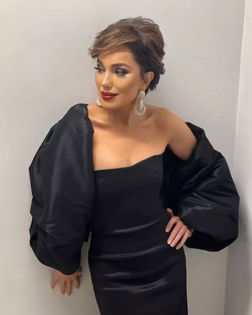 İfaçının qara libası geniş qol hissəsi ilə diqqət çəkib. İzləyiciləri onun bu görüntüsünü çox bəyəniblər.