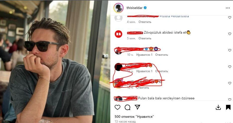Ötən gün yeni fotosunu yayımlayan ifaçı yenə tənqid edilib. İstifadəçilər E.Qasımova "Eldar, istefa", "Zövqsüzlük abidəsi, istefa et" kimi şərhlər yazılıb.