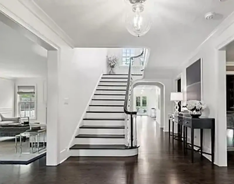 Evdə geniş mətbəx, dolab, günəşli tərəfdə ailə otağı, kaminli ekranlı eyvan, idman zalı, kinoteatr və müasir texnika ilə təchiz olunmuş çoxlu otaqlar var. Tavan hündürlüyü təxminən 3,2 metrə çatır. Yaşayış evi səliqəli baxça ilə əhatə olunub, dəmir darvazalar ilə hasarlanıb. Yerli ərazidə böyük idman meydançası, üç qaraj və bir spa sahəsi var.