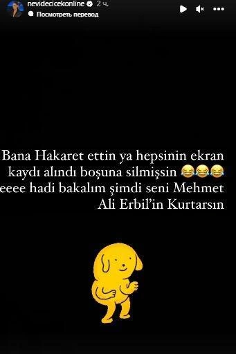 Bundan başqa, Nevide sosial media hesabından ona söz atan Ərbilin eks-nişanlısı Gülseren Ceylanı haqqında səsləndirdiyi fikirlərə görə ondan şikayətçi olub.
