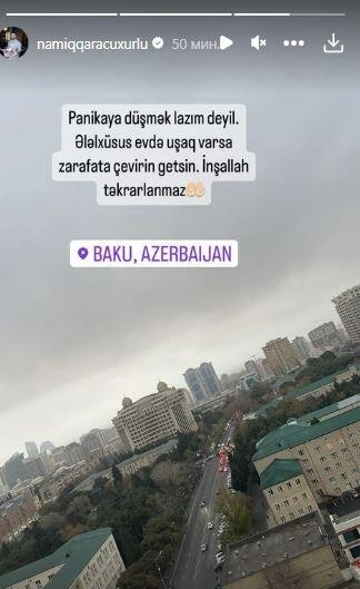 Meyxanaçı Namiq Qaraçuxurlu zəlzələ ilə bağlı paylaşım edib.