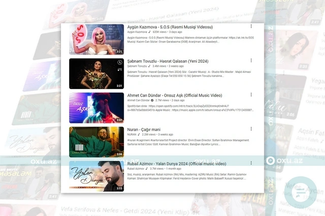 "YouTube" platformasında ən çox dinlənilən mahnıların siyahısını təqdim edirik:
