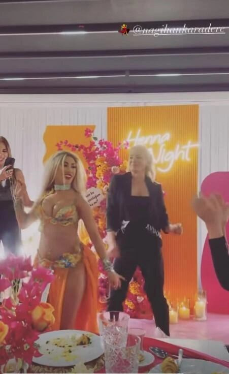 "Survivor xına gecəsi" adlandırdığı gecədə əllərinə xına vuran Karadere rəqqasə ilə göbək rəqsi edib.