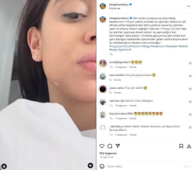 "Kısmetse Olur" yarışması ilə tanınan Simge Nur Erkoç yanlış estetik qurbanı olub.