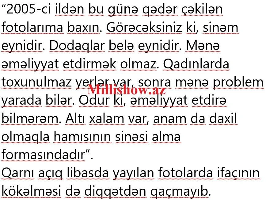 Müğənni Röya Ayxan bu dəfə sinəsi haqqında verdiyi açıqlaması ilə gündəmə gəlib.