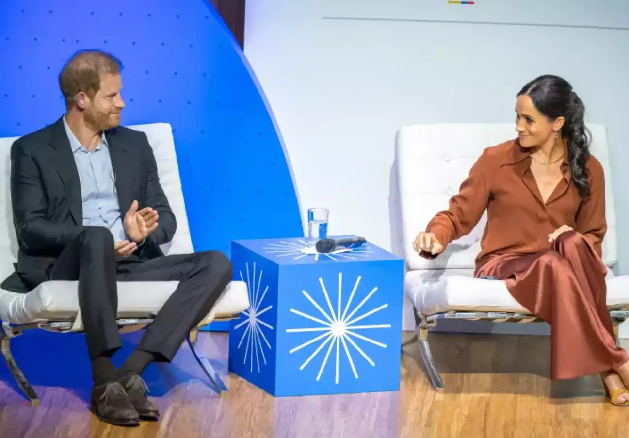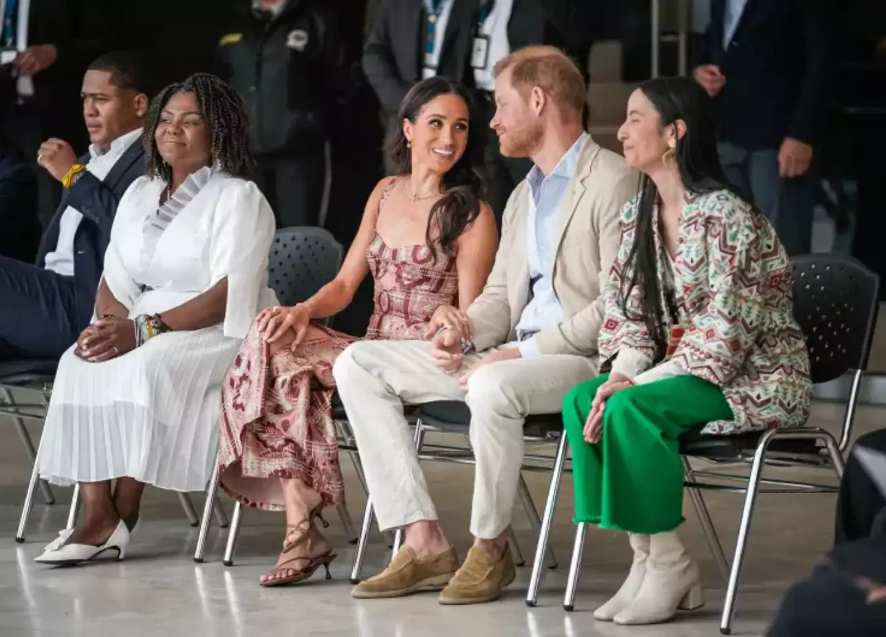 Kolumbiyanın vitse-prezidenti ilə görüşə Meqan tünd mavi kostyumda gəlib. Meqan Markl və Şahzadə Harrinin səfərinin məqsədi kiber zorakılıqla mübarizədir.