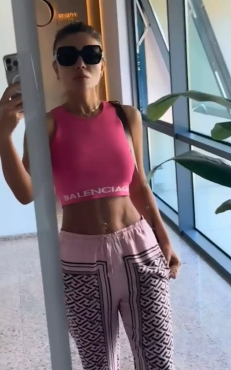 Milli.Az olay-a istinadən xəbər verir ki, xeyli çəki atan televiziya ulduzu ideal və fit bədən quruluşunu güzgü önündə nümayiş edib.