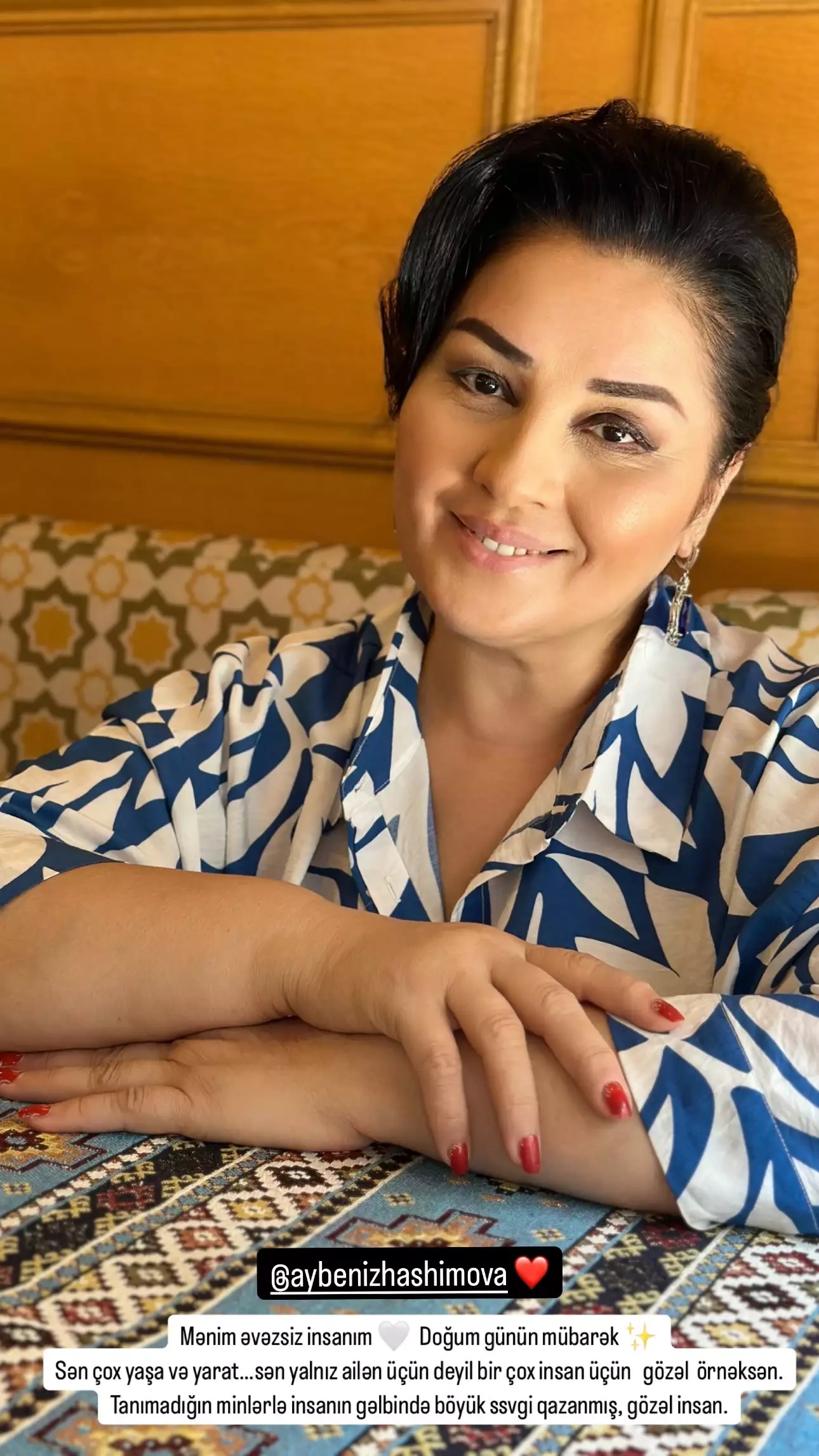 OLAY yazır ki, sənətkarın bloger qızı Aynişan Quliyeva valideyininin fotosunu sosial şəbəkə hesabında paylaşaraq, anasının 56 yaşı münasibəti ilə təbrik edib.