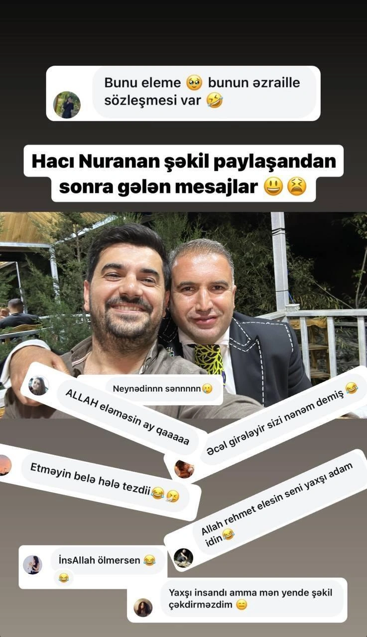 Elşən həmin mesajları sosial şəbəkə hesabında yayıb və "Hacı Nuranla şəkil paylaşandan sonra gələn mesajlar" şərhini yazıb.