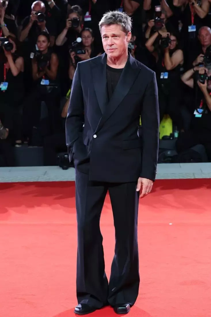 Pitt qırmızı xalça üçün “Louis Vuitton”dan şirin kostyum seçib. Libas Venesiyanın ənənəvi köynək və qalstukdan imtina edərək, əvəzində tək düyməli bleyzer seçib. Zərif bir toxunuş olaraq parlayan mirvari düyməni də gözümüzdən qaçırmırıq.