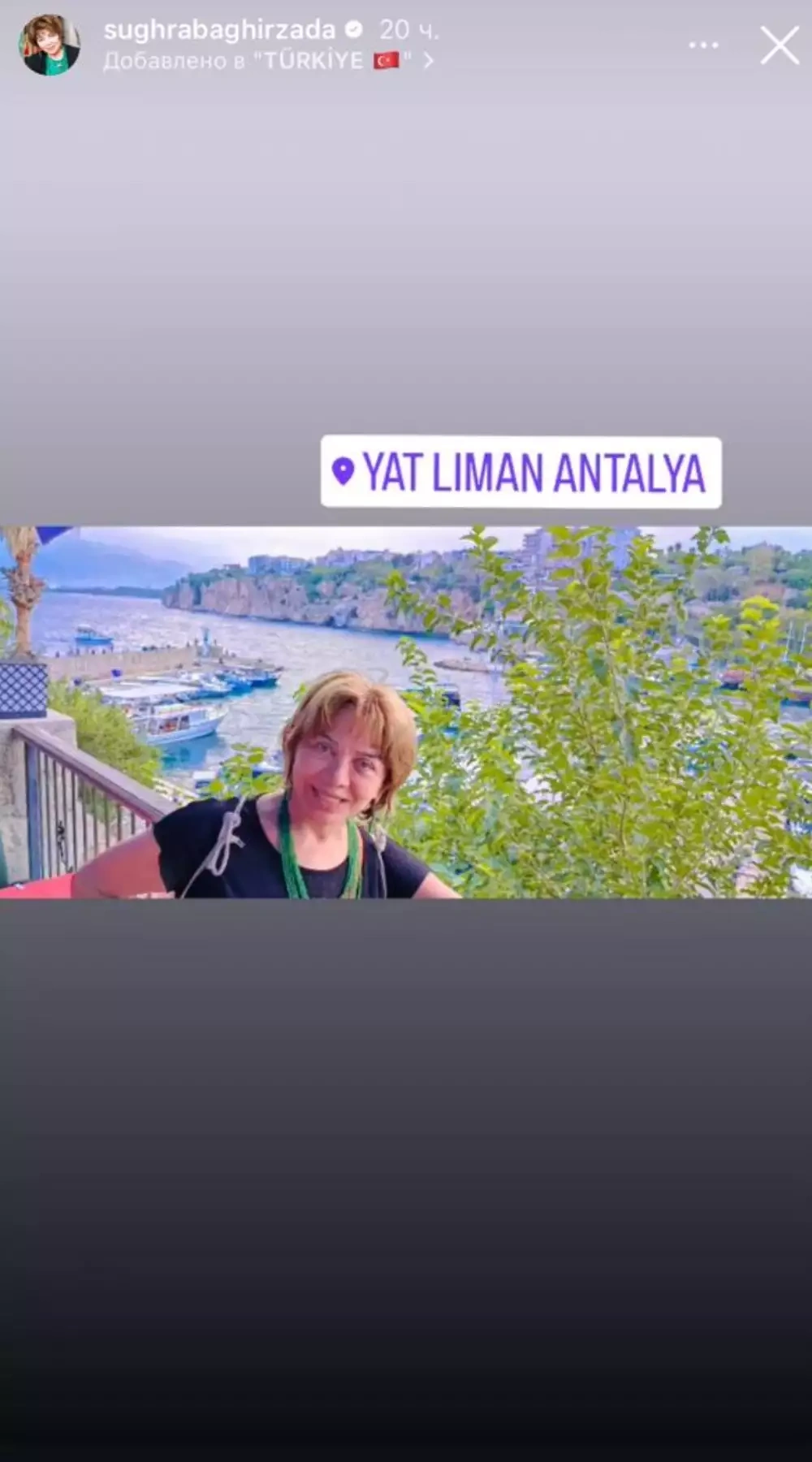 Aktrisa Antaliyanın mərkəzində yerləşən “Yat Liman” sahilində istirahət etdiyini vurğulayıb.