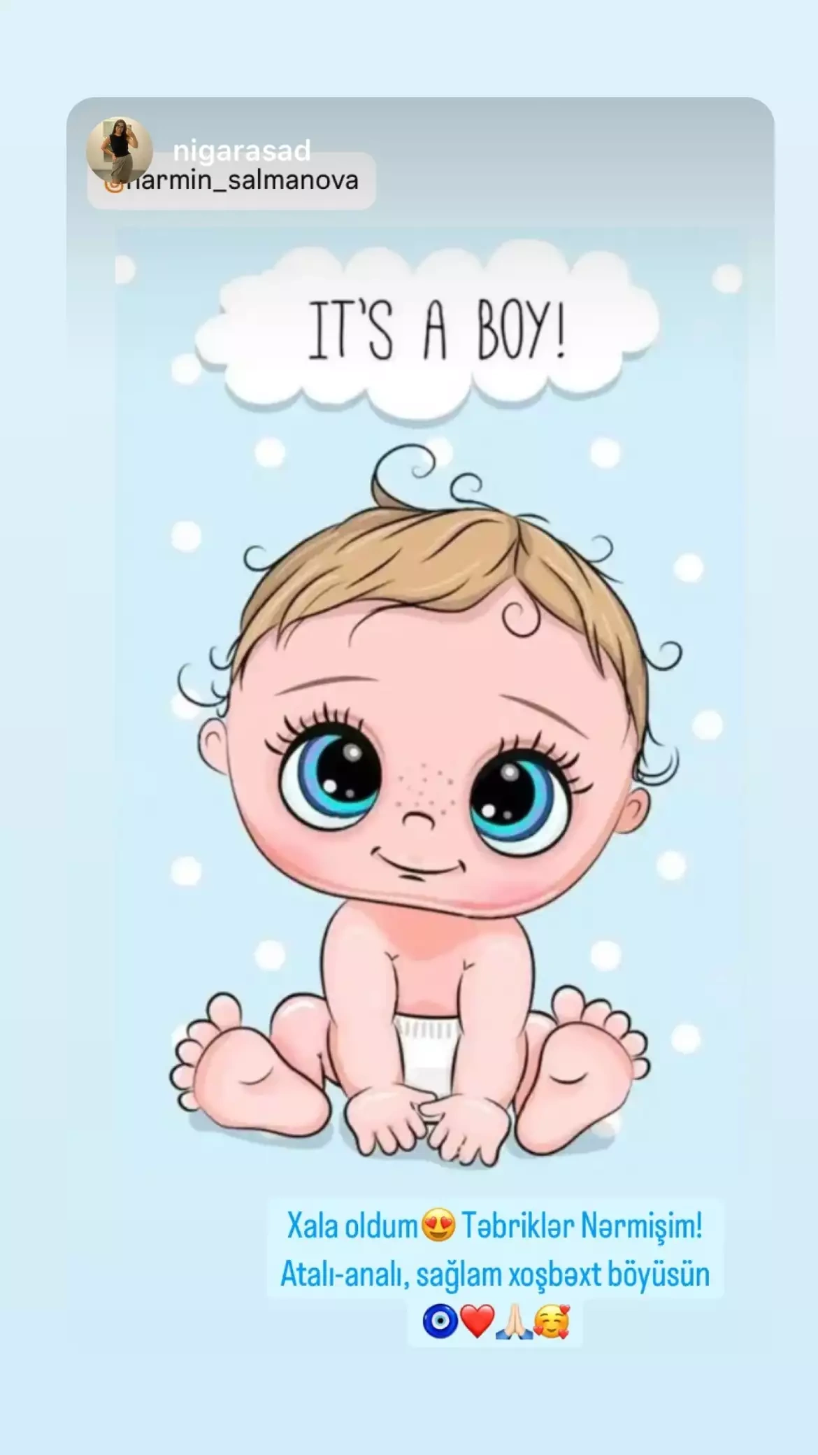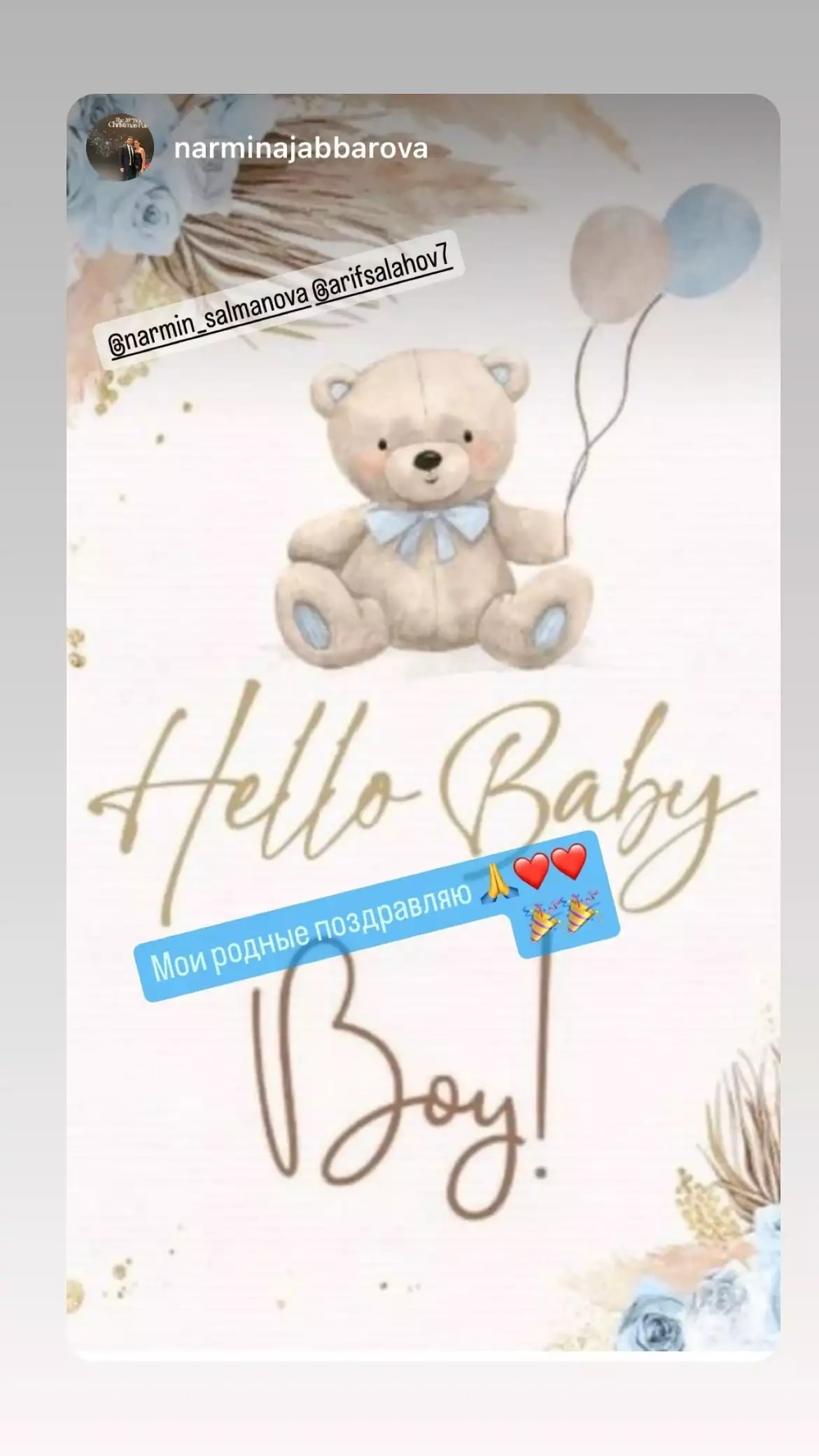 Nərmin oğlunun dünyaya gəldiyini açıqlasa da, körpələrinə qoyduqları adı bəlli etməyiblər.