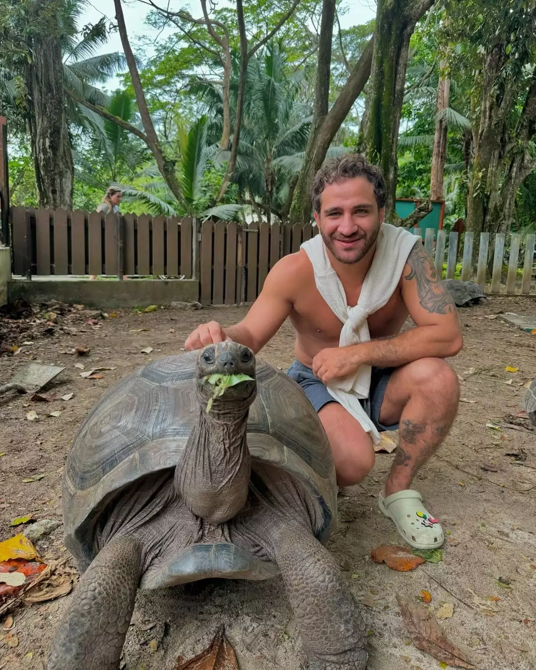 Şəkillər arasında maraq doğuran cüdoçunun dünyanın nadir heyvanlarından biri sayılan Seyşel adalarında yaşayan nəhəng İspolin (Karapaksa) tısbağasını yemləməsi olub.