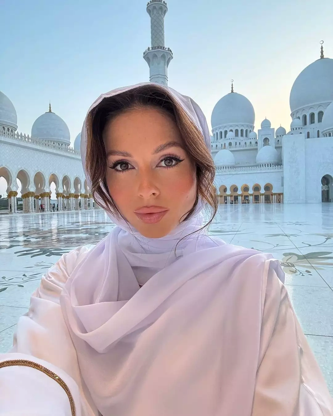 OLAY yazır ki, Abu – Dabidə istirahət edən 34 yaşlı sənətçi övladları ilə birgə minlərlə turistin axın etdiyi məşhur Şeyx Zayed məscidini ziyarət edib.