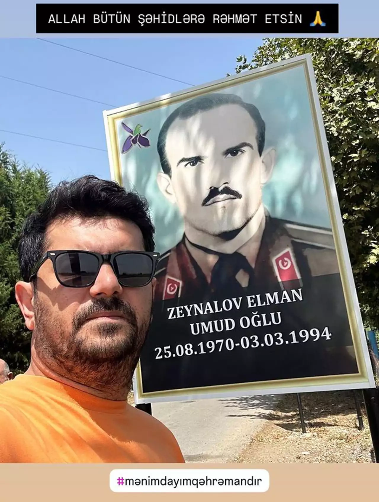 Aktyor Elşən Orucov şəhid dayısı Elman Zeynalovla bağlı paylaşım edib.