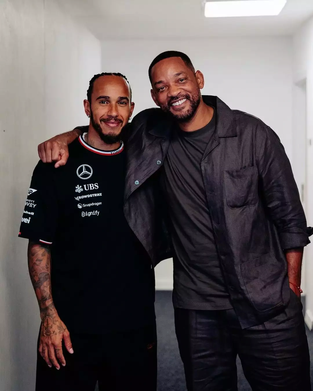 “Mercedes Formula 1” komandasının dünyaca şöhrətli britaniyalı yarış pilotu Lüis Hemilton “Formula 1 Qatar Airways” Azərbaycan Qran Prisi 2024 çərçivəsində konsert proqramı ilə çıxış edən dünya şöhrətli aktyor və repçi Uill Smitlə Bakıda bir araya gəlib.