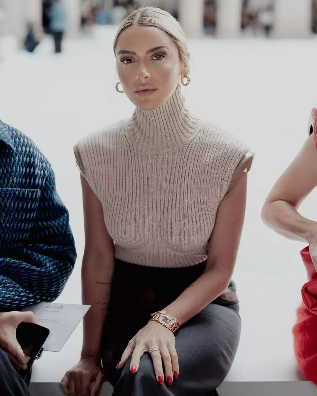 OLAY yazır ki, müğənni defileyə sözügedən markanın geyimində qatılıb. Hadise üzərinə qolsuz bej “crope” sviter və üzərində qəhvəhi kəsik halqavari printli qara ətək geyinib.