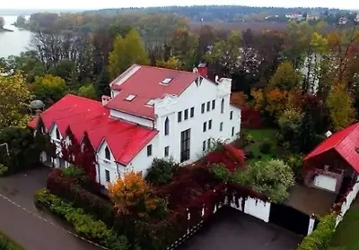 Evin sahəsi 760 kvadratmetrdir, interyeri klassik saray üslubunda unikal dizayna malikdir. Bina 80 sot ərazidə yerləşir, öz sahil xətti, hovuzu, hamamı, kinoteatrı var. Evin içində lifti ve çoxlu kaminleri var. Puqaçova Rusiyanı tərk etdikdən sonra mülkdə ya onun nəvəsi Nikita Presnyakov, ya da qızı Kristina Orbakaite yaşayırdı. Obyekt hal hazırda boşdur.