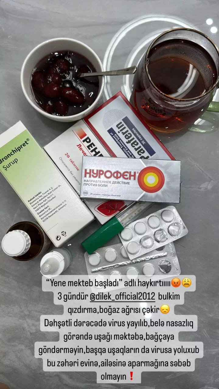 "Yenə məktəb başladı" adlı haykırtı. Üç gündür qızım qızdırma, boğaz ağrısı çəkir. Dəhşət virus yayılıb, belə nasazlıq görəndə uşağı məktəbə, bağçaya göndərməyin. Başqa uşaqların da virusa yoluxub bu zəhəri evinə, ailəsinə aparmağına səbəb olmayın"