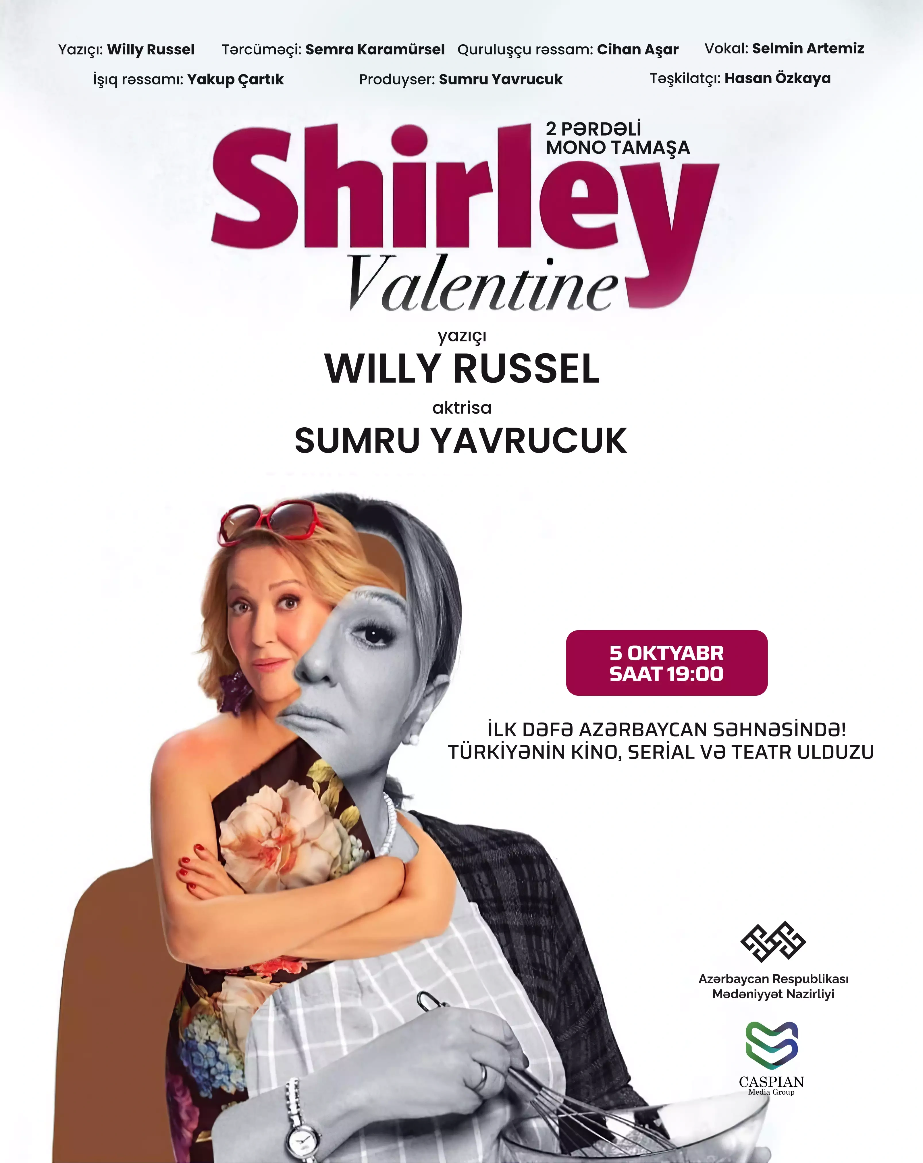 OLAY yazır ki, “Caspian Media Group”un təşkilatçılığı və Mədəniyyət Nazirliyinin dəstəyilə 2 gün nəzərdə tutulan “Sherley Valentine” tamaşası cəmi 1 gün – 5 oktyabrda baş tutacaq. Buna səbəb aktrisanın Avstrasliyaya olan qastrol səfəridir.