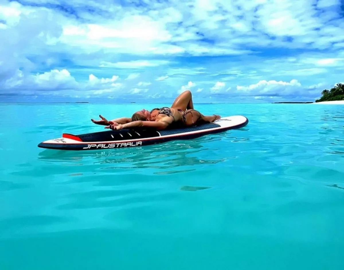"Love island" fenomeni sörfinq edərkən pozalar verib.