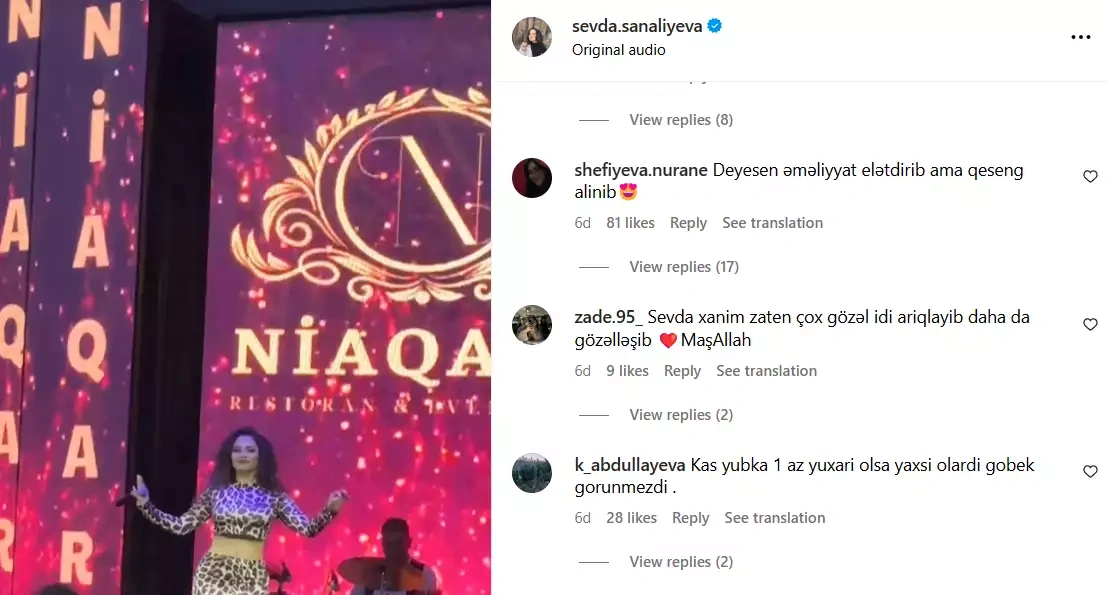 İzləyicilər bu nəticəni Sevdanın pəhrizlə deyil, plastik əməliyyat vasitəsi ilə əldə etdiyini yazıblar.