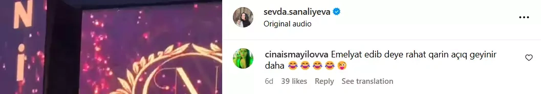 Müğənni isə yazılan şərhlərə heç bir reaksiya verməyib.