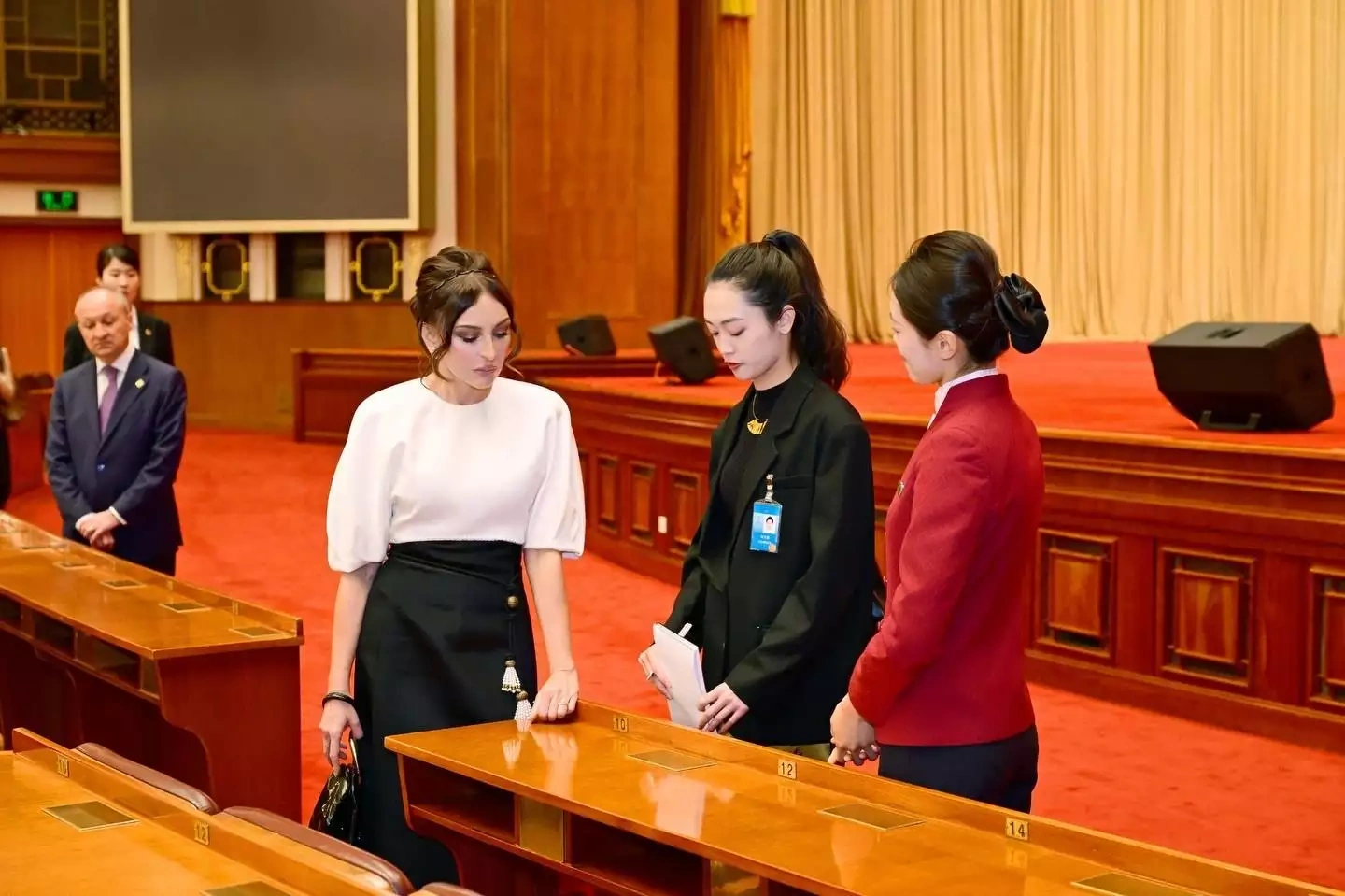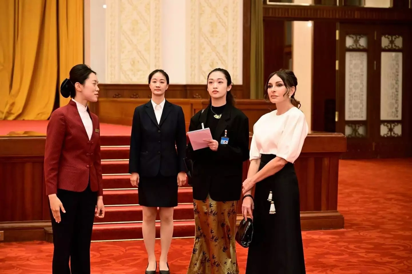 Aprelin 23-də Azərbaycanın birinci xanımı Mehriban Əliyeva, qızı Leyla Əliyeva və digər ailə üzvləri Pekində Böyük Xalq Sarayı ilə tanış olublar.