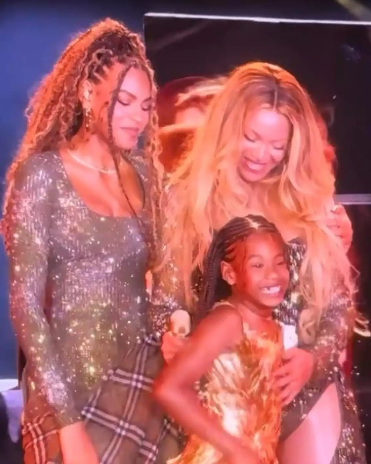 43 yaşlı müğənninin böyük qızı 13 yaşlı Blu Ayvi də tamaşaçılar qarşısına çıxıb. Şouda yaşanan bu anların videoları sosial şəbəkələrdə yayılıb.