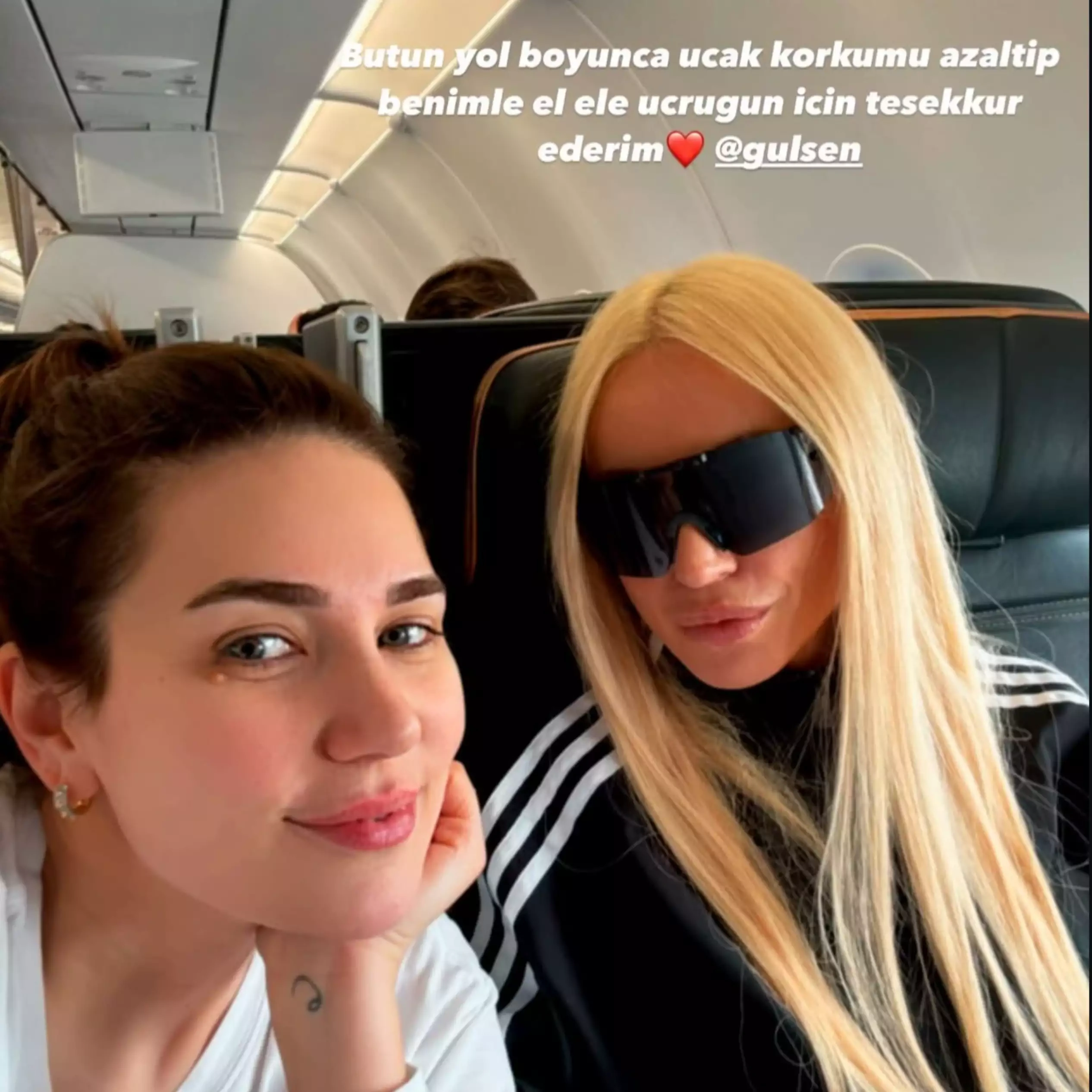 Foto paylaşan Buse Gülşenlə eyni təyyarədə uçduqlarını qeyd edib.
