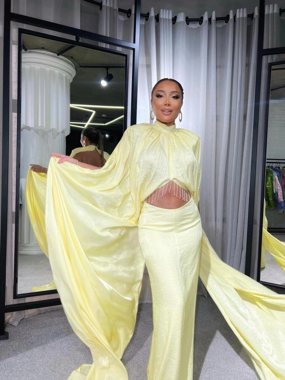 Milli.Az xəbər verir ki, sənətçinin qarın və kürək dekolteli libası müzakirələrə səbəb olub.