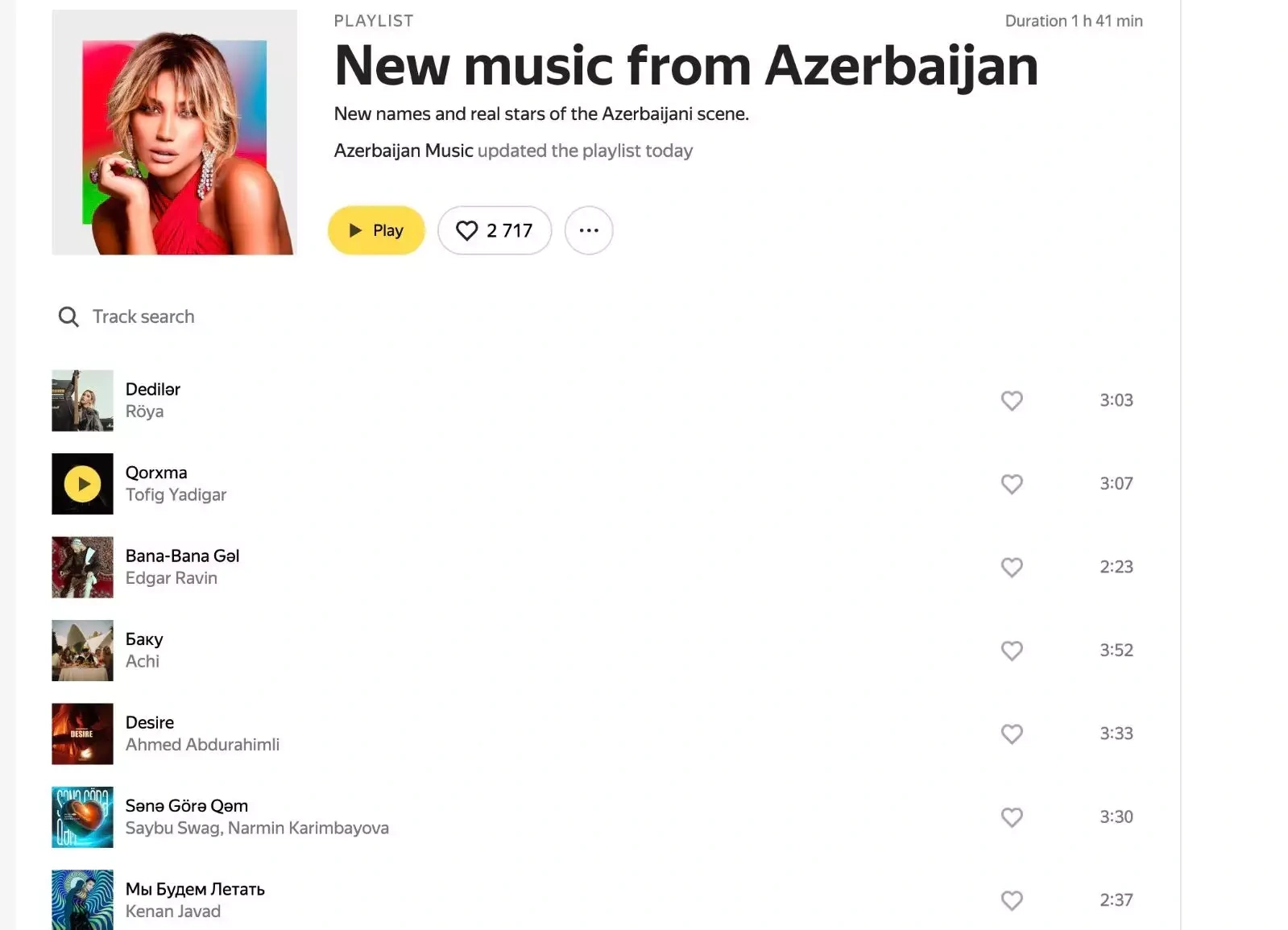 OLAY yazır ki, pop ulduzun səsləndirdiyi bəstə məşhur “Yandex Music” platformasında ən çox dinlənilənlərdən olub. Belə ki, Röya Ayxanın 10 gün əvvəl təqdim etdiyi əsər Azərbaycan üzrə birinci yer tutub.
