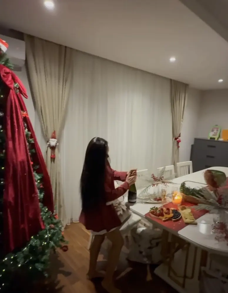 Ayanın paylaşımında masanın altında üzüm yeməyi diqqət çəkib. Belə ki, inanca görə, yeni ildə masanın altında 12 arzu tutub 12 üzüm yedikdə həmin arzular çin olur.