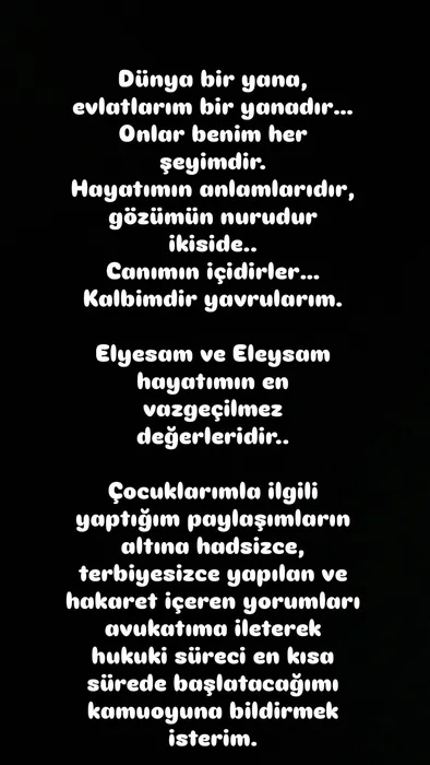 Milli.Az xəbər verir ki, sənətçi bildirib ki, uşaqlarına qarşı edilən hücumlar artıq səbrini tükədib və məsələ ilə bağlı məhkəmə prosesi başladılacaq.
