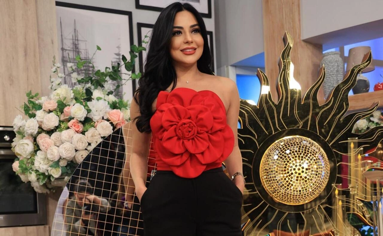 Gül formasında olan topu ötən həftə Vüsalə verilişində istifadə edib. Qırmızı koftanı aparıcı qara şalvarla tamamlayıb.