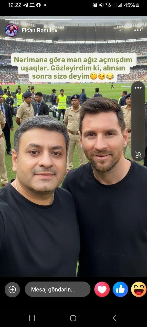 Sənətçi süni intellekt vasitəsilə ABŞ-də forma geyinən L. Messi ilə fotosunu paylaşaraq Nərimana görə "ağız açdığını" bildirib. O, paylaşımına belə bir qeyd əlavə edib: