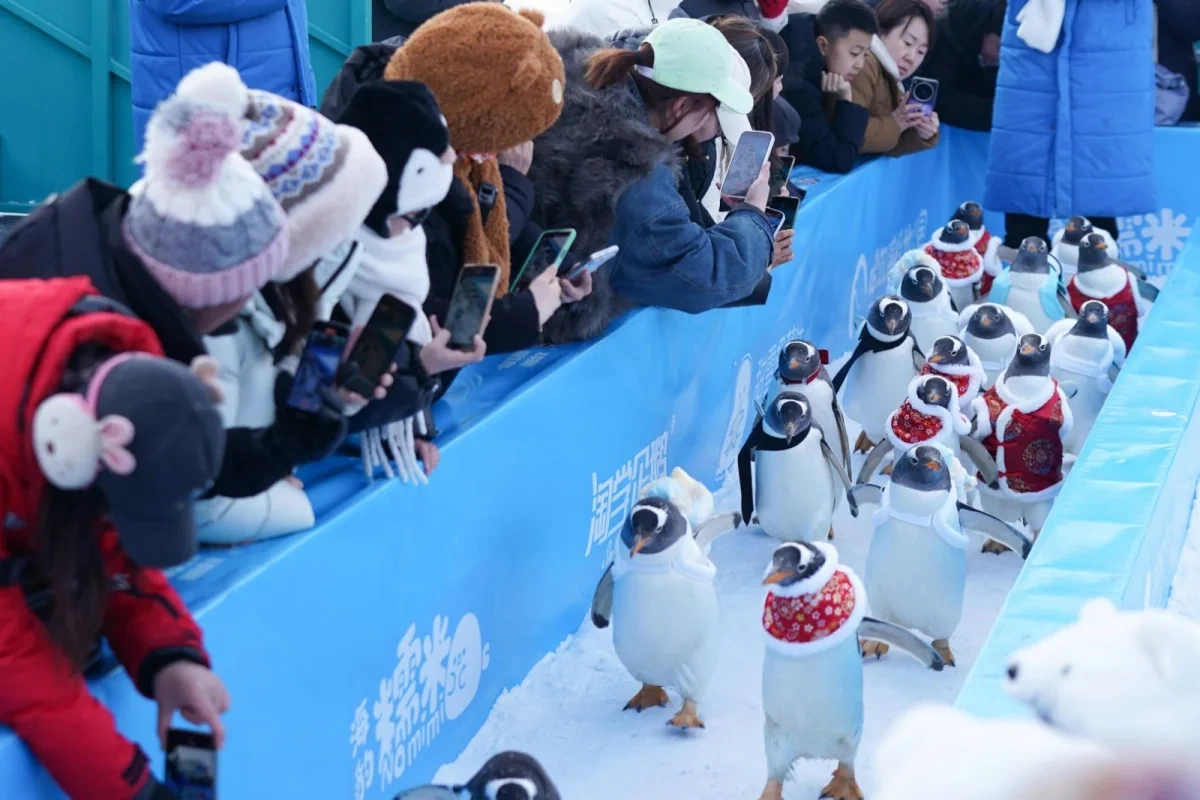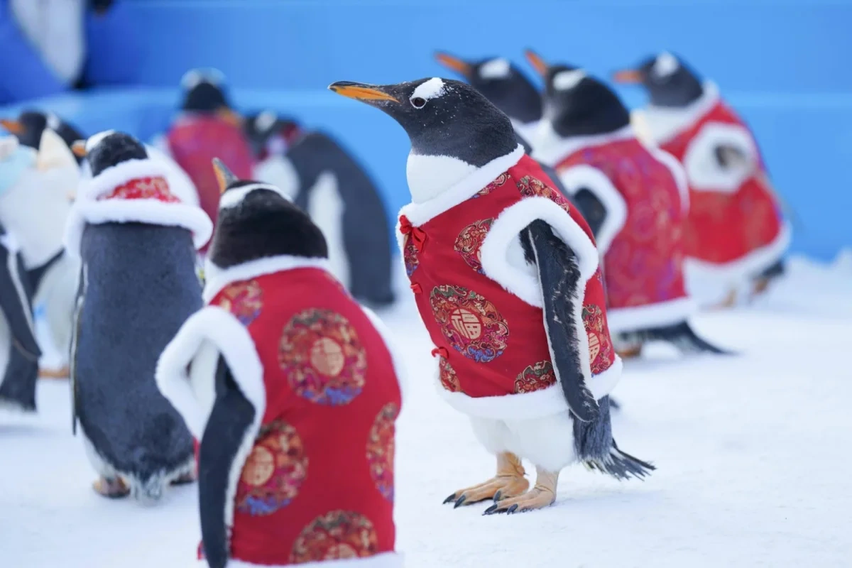 Çinin Harbin şəhərində pinqvinlərin paradı keçirilir.