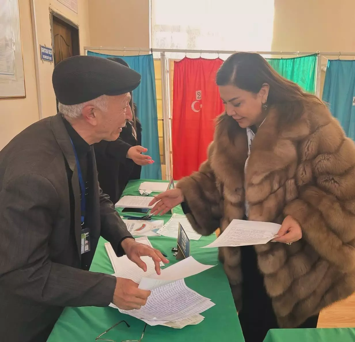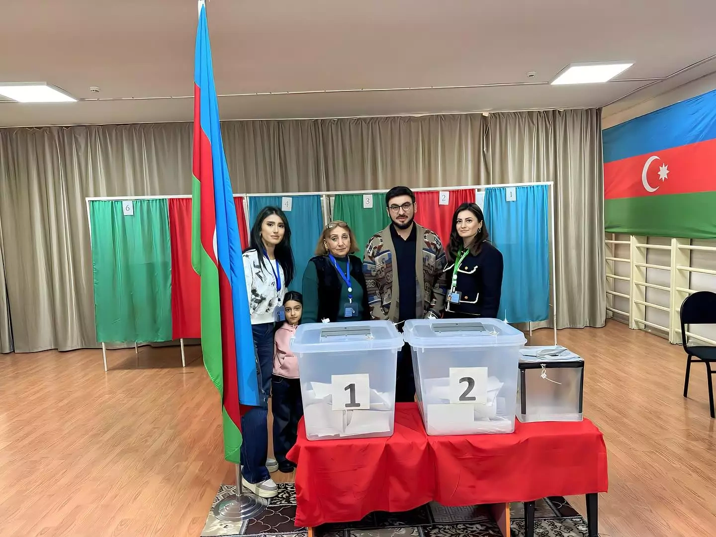 Əməkdar jurnalist Xoşqədəm Baxşəliyeva səsverməyə övladları Arda və Arınla gedib.
