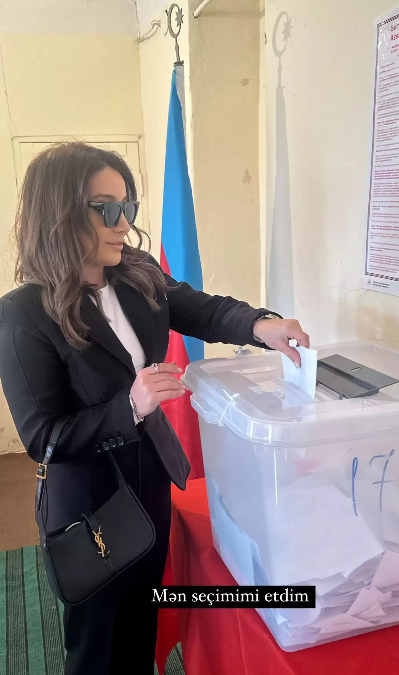 Gənc artist NURAN seçki məntəqəsindən fotosunu paylaşıb.